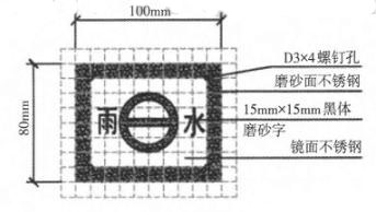 標識權屬單位“銘牌”的標識牌可采用不銹鋼材質(zhì),厚度為2mm,局部根據(jù)圖案和文字作腐 蝕磨砂處理。采用自攻螺釘固定于隱形井蓋鋪裝 層上,必要時背面涂強力膠,安裝時應保持標識 牌四邊與鋪裝走向一致。若是燃氣和電力井標識 牌圖案部分采用沖壓工藝使之內(nèi)凹0.5mm,凹槽內(nèi)應涂刷紅色反光漆。